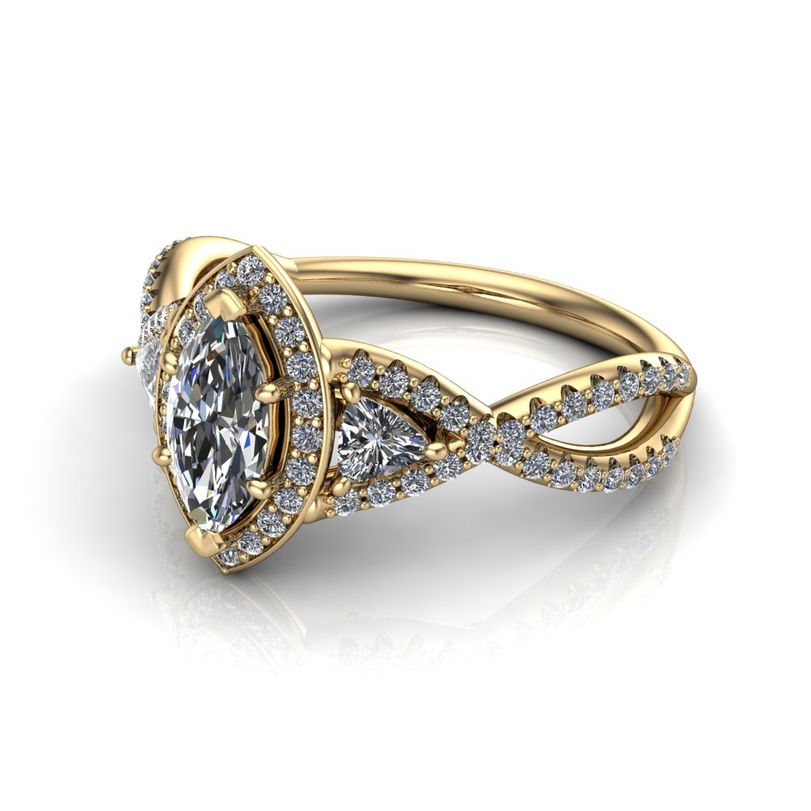 Current design holds a 8mm x 4mm Marquise Cut Near Colorless Moissanite or stone of your choice (contact us for pricing on different gemstone center)